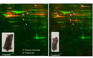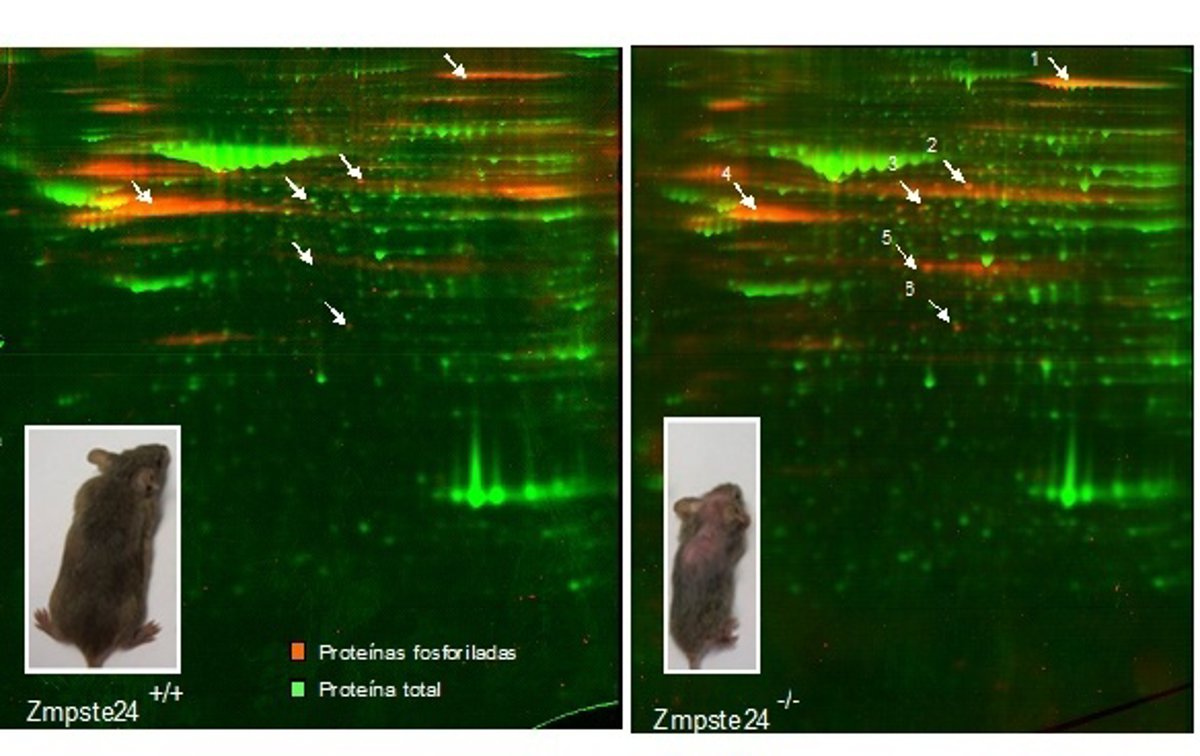 El artículo profundiza en la progeria, una enfermedad genética que hace que niños padezcan problemas propios de la vejez, y ha sido posible gracias al estudio de un modelo animal de ratón deficiente en una proteína clave en el desarrollo de dicha enfermedad. La ausencia de esta proteína --Zmpste24-- conlleva defectos en la maduración de la Lamina A, una proteína crítica para el soporte nuclear y para la organización de la cromatina.