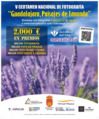 Hasta el 12 de agosto se podrán presentar obras al V Certamen Nacional de Fotografía Paisajes de Lavanda, convocado por el digital Nueva Alcarria y Alcarria Natura. Este concurso anual invita a fotógrafos aficionados y profesionales a capturar la belleza de los campos de lavanda de la provincia de Guadalajara.