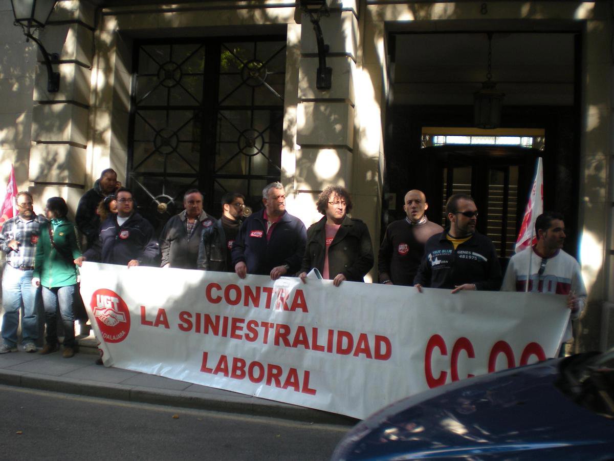 Unas 150 personas, convocadas por UGT y CCOO, se han concentrado en el Paseo de las Cruces de Guadalajara, frente a la Subdelegación del Gobierno, para condenar la última muerte en accidente laboral en la región, que tenía lugar esta semana en la empresa Basf de Guadalajara.