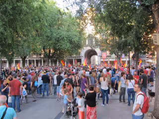 Con banderas republicanas y coronas que pedían la República, simpatizantes de IU, Podemos, Partido Comunista y demás ciudadanos se han concentrado en la céntrica plaza de Zocodover, portando pancartas y coreando lemas exigiendo un proceso en el que los ciudadanos "tengan la palabra".