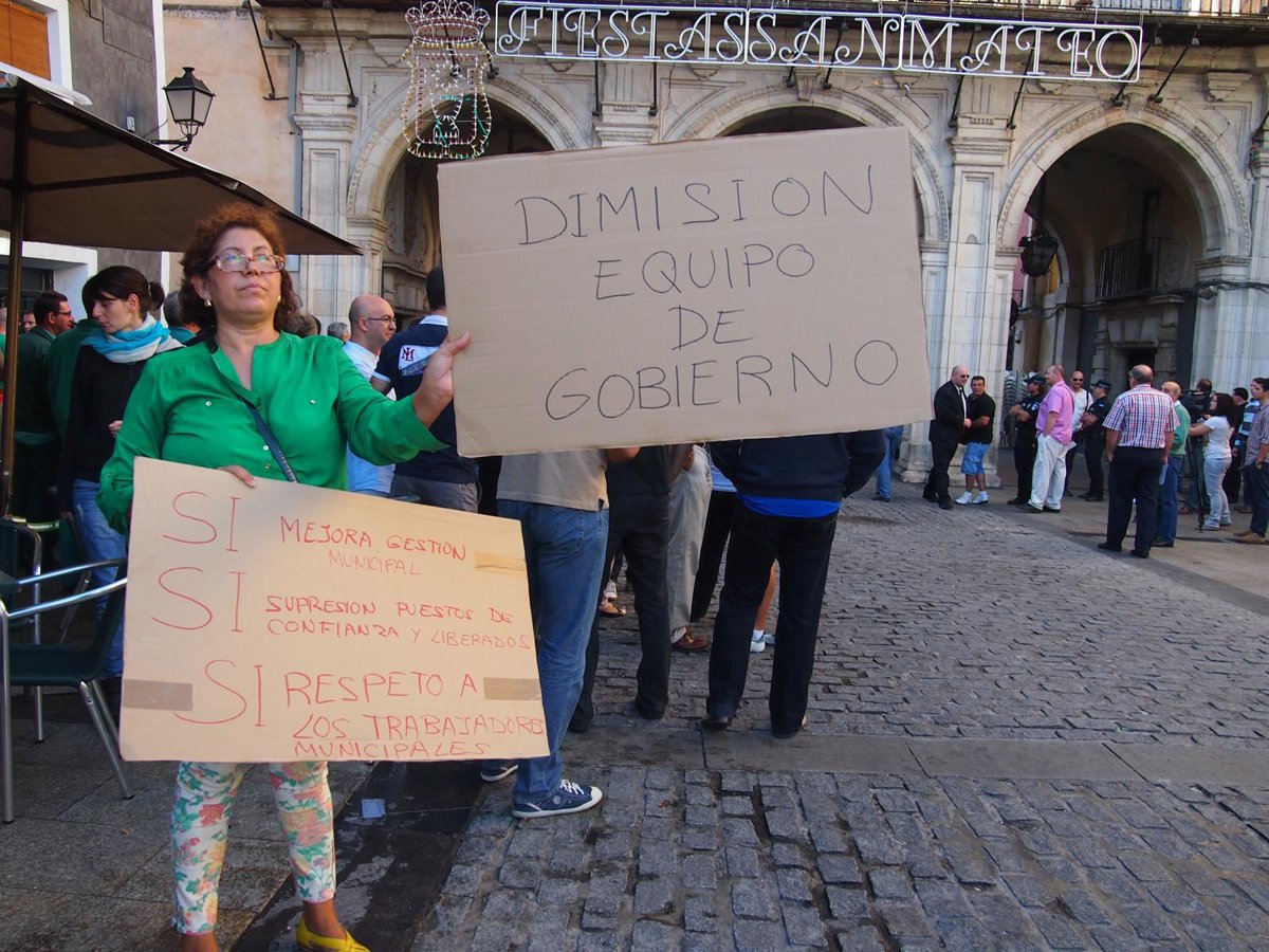 Algunos de los manifestantes portaban pancartas en las que se podían leer frases como 'Dimisión del Equipo de Gobierno' o 'No más reducción salarial, no más despidos'.