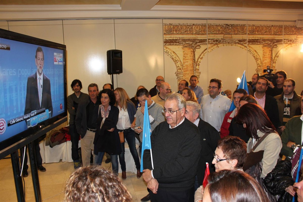 Unos 300 simpatizantes se han desplazado al cuartel general de los 'populares', instalado en el Hotel Beatriz de Toledo, para celebrar los resultados electorales logrados por el PP en estas elecciones generales, que han sido "históricos" según el secretario regional de los 'populares', Vicente Tirado, gracias a la sociedad castellano-manchega.
