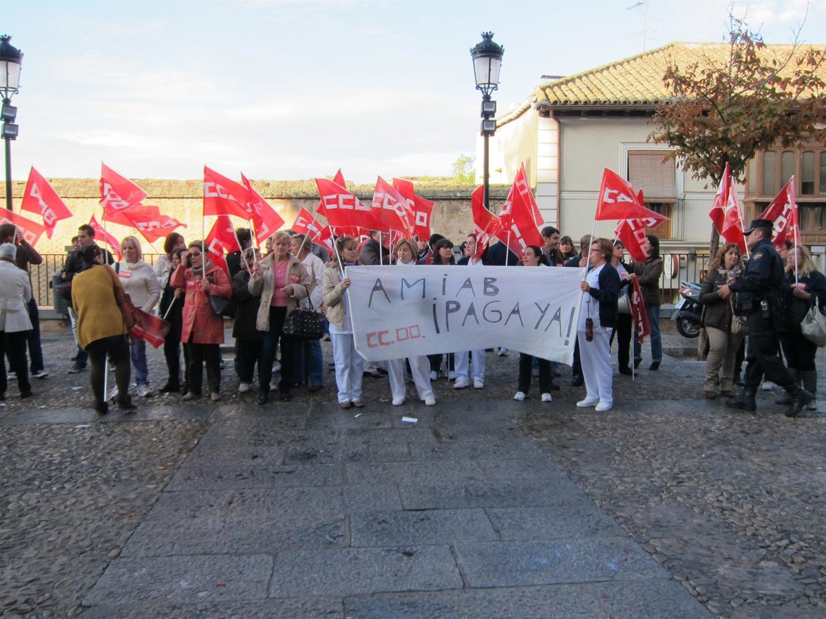 Medio centenar de personas, entre los que se encontraban trabajadores de la empresa Amiab y representantes de CCOO, se han concentrado este jueves a las puertas del Palacio de Fuensalida de Toledo --sede del Gobierno regional-- para reclamar a Amiab, empresa encargada de la limpieza de algunas dependencias de la Junta de Comunidades de Castilla-La Mancha, el cobro de la nómina de septiembre.