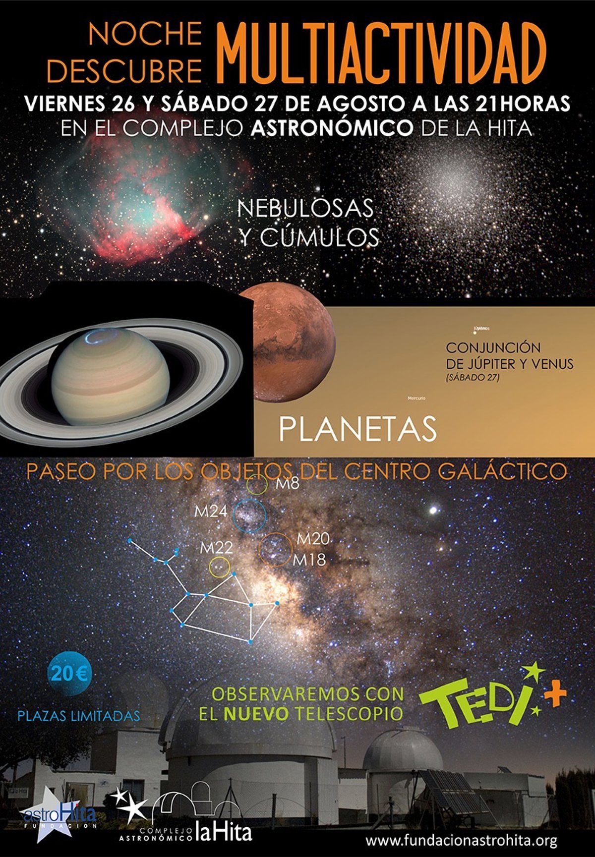 Cualquiera que desee participar en esta noche y observar el cielo a través de los telescopios 'Tedi+' y 'Phoenix' debe inscribirse enviando un e-mail a info@fundacionastrohita.org indicando el número de asistentes y la edad.