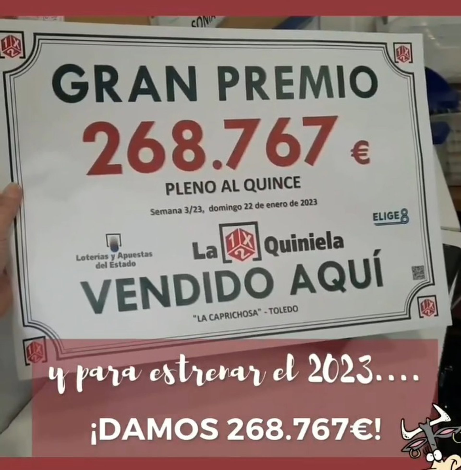 La administración de lotería La Caprichosa de Toledo, situada en la calle Comercio del Casco Histórico de la ciudad, ha repartido este fin de semana un 'Pleno al Quince'.