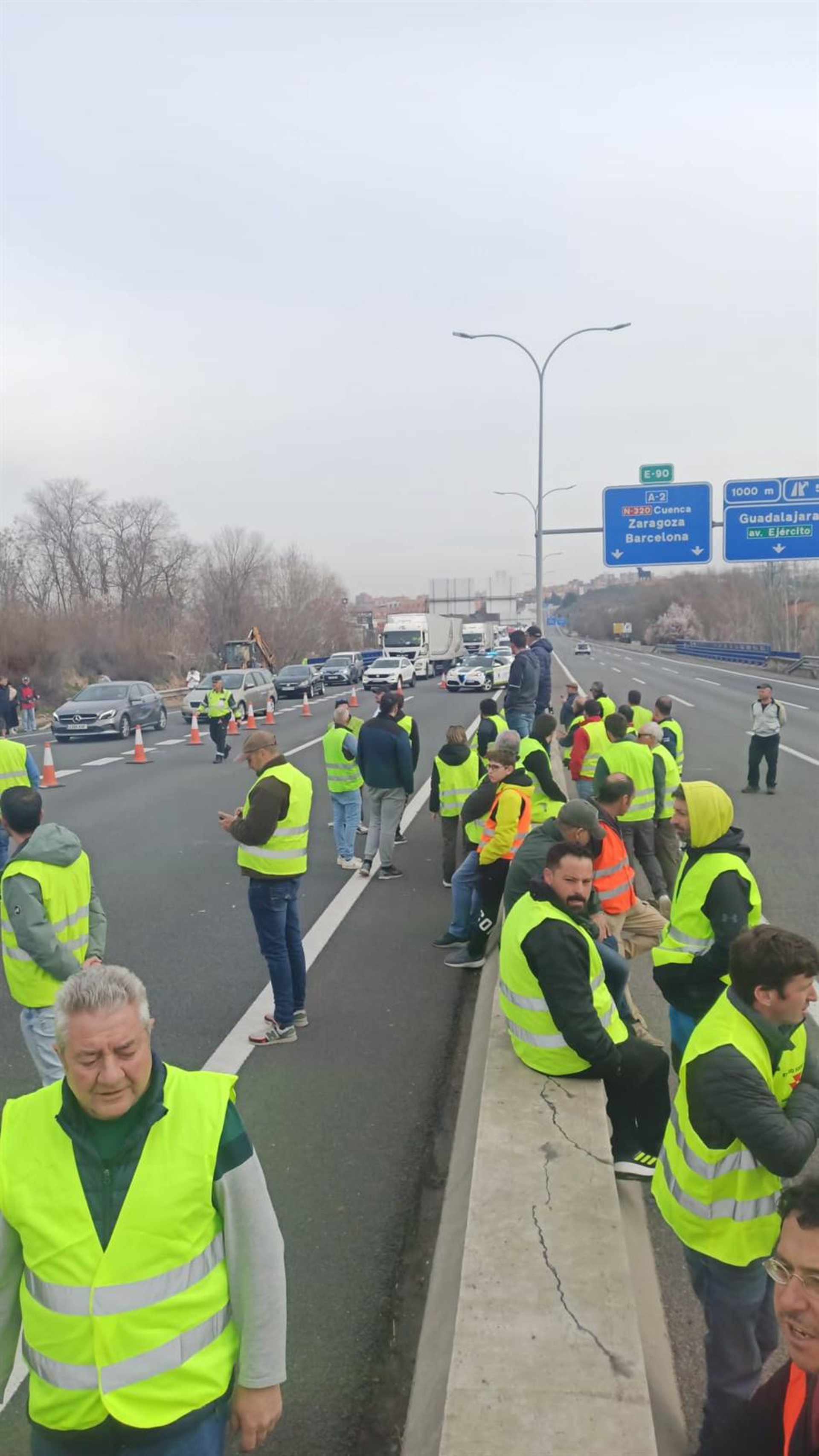 Finalmente, la protesta de agricultores que circulaba entre Marchamalo y Guadalajara capital ha terminado por la autovía A-2 en el entorno de Torija cerca de las 12.00 horas en dirección Madrid, y pese a que la intención era interrumpir al tráfico en ambos sentidos, se da paso por uno de sus carriles en sentido Zaragoza y Barcelona.