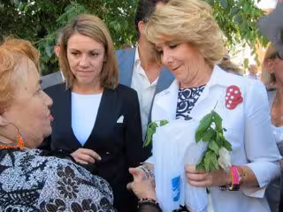 Aguirre ha pasado la mañana de hoy con Cospedal. Ambas han compartido actos de campaña a primera hora de la mañana en la localidad madrileña de Leganés, donde han mantenido un encuentro con vecinos y simpatizantes y, posteriormente, se han desplazado a Esquivias (Toledo) para participar en un acto de partido centrado en Sanidad.