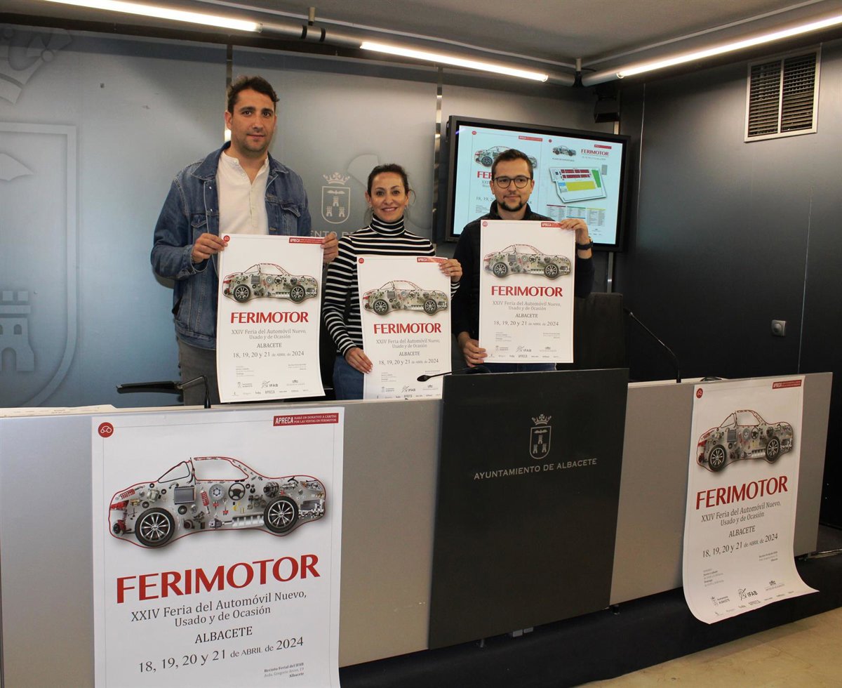La concejala de Turismo, Rosa González de la Aleja, ha informado en rueda de prensa de la XXIV edición de la Feria del Automóvil Nuevo, Usado y de Ocasión, Ferimotor, que tendrá lugar en el Pabellón Ferial de la IFAB desde este jueves 18 al día 21, acompañado por el diputado provincial de Deportes, Daniel Sancha, y el presidente de la Asociación Provincial de Empresas Concesionarias de Albacete, Apreca, Carlos Ortega.