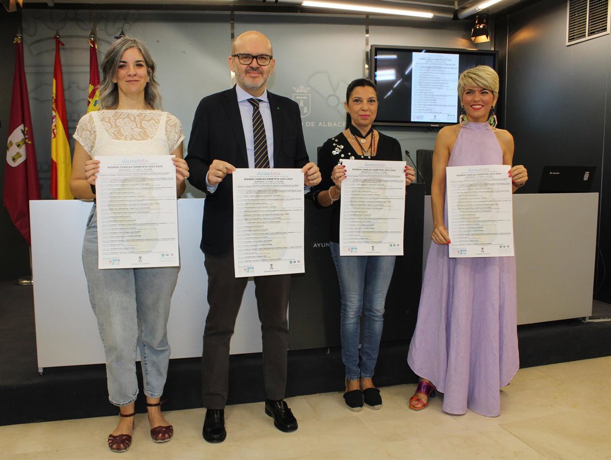 La concejala de Mujer e Infancia, Gala de la Calzada, ha participado en la presentación de las actividades organizadas con motivo de la Semana Mundial de la Lactancia Materna en Albacete por la Asociación DameTeta, así como durante el curso 2023-2024, junto a su presidenta, Isabel Martínez-Acacio, la responsable de relaciones institucionales de la asociación, María García, y el diputado provincial de Sanidad, Francisco García.