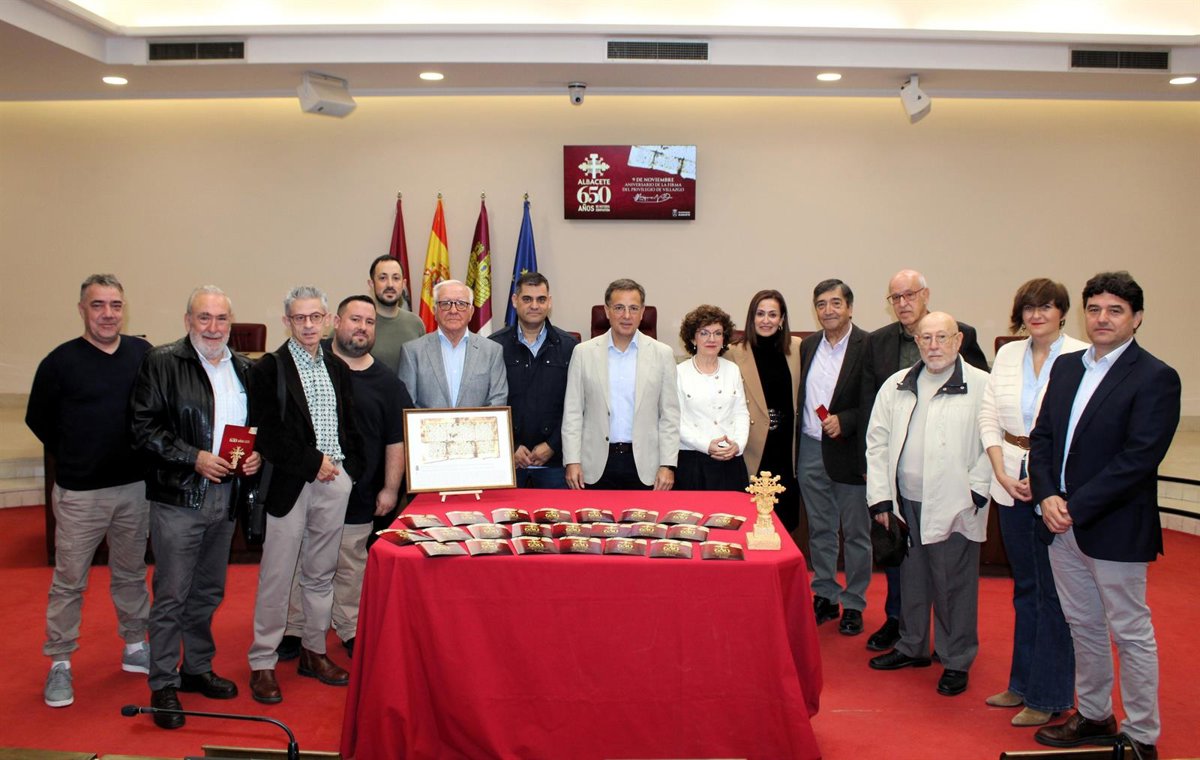 El alcalde de Albacete, Manuel Serrano, ha presentado este miércoles en el salón de plenos del Ayuntamiento los actos conmemorativos del 650 aniversario de la firma del Privilegio de Villazgo con una serie de rutas gastronómicas, exposiciones y conferencias sobre la historia de la ciudad.