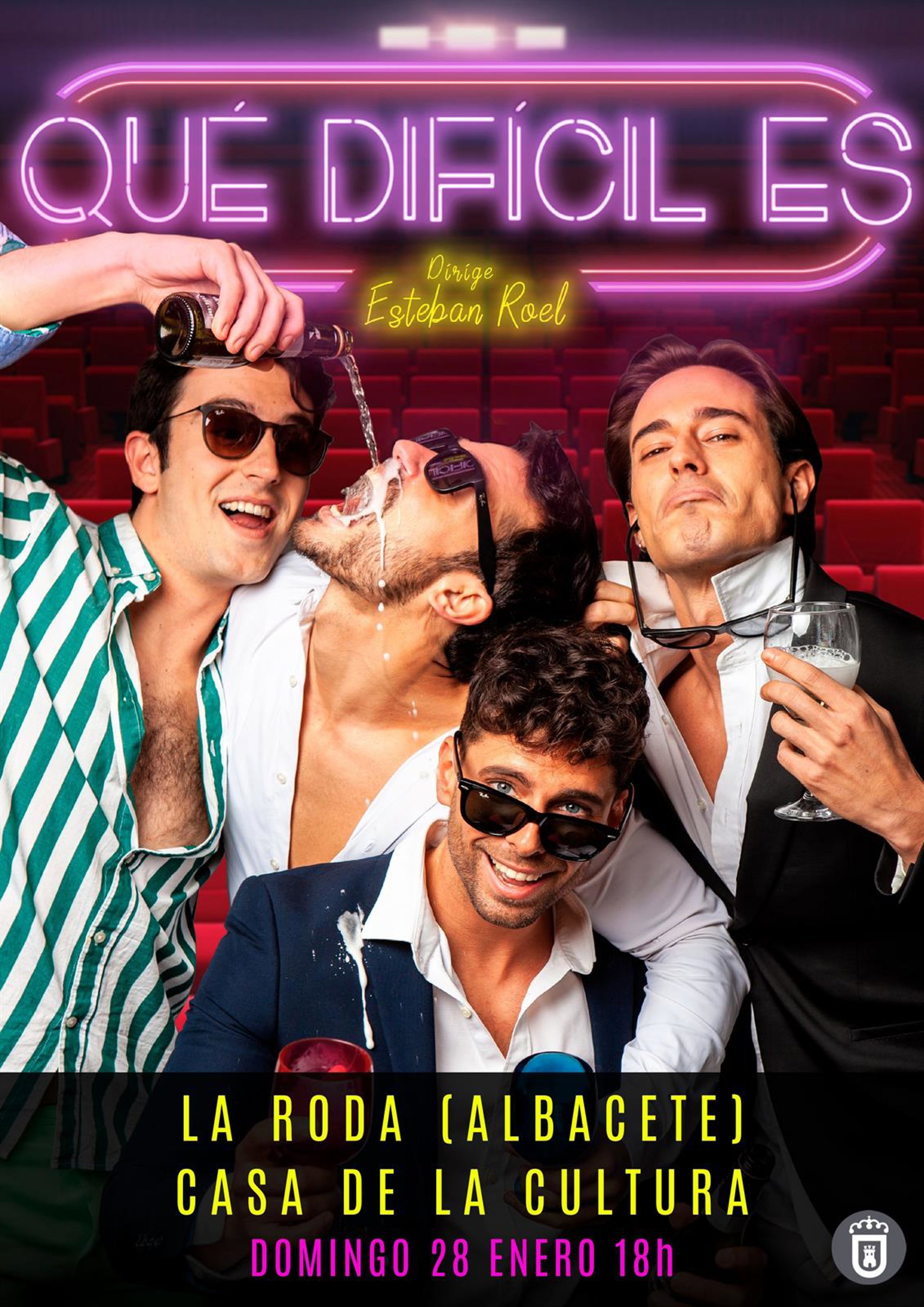 La concejalía de Cultura ha hecho público que será el próximo 28 de enero, a las 18.00 horas, cuando la coproducción 'Qué difícil es', dirigida por Esteban Roel, estará en La Roda, arrancando con ella la programación del próximo trimestre.