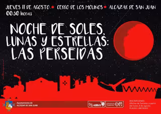 El Ayuntamiento de Alcázar de San Juan (Ciudad Real), a través de las concejalías de Turismo y Medio Ambiente, ha planificado una nueva actividad para la contemplación de las Perseidas que, bajo el nombre de 'Noche de soles, lunas y estrellas', tendrá lugar el jueves, 11 de agosto, a las 00.30 horas en el cerro de los molinos.