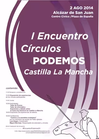 El encuentro se iniciará a las 11.00 horas con una puesta en común de las experiencias de cada círculo. Por la tarde los participantes podrán elegir entre un taller de periodismo, un taller de herramientas informáticas o entrar a debatir sobre la nueva ley electoral en Castilla-La Mancha.