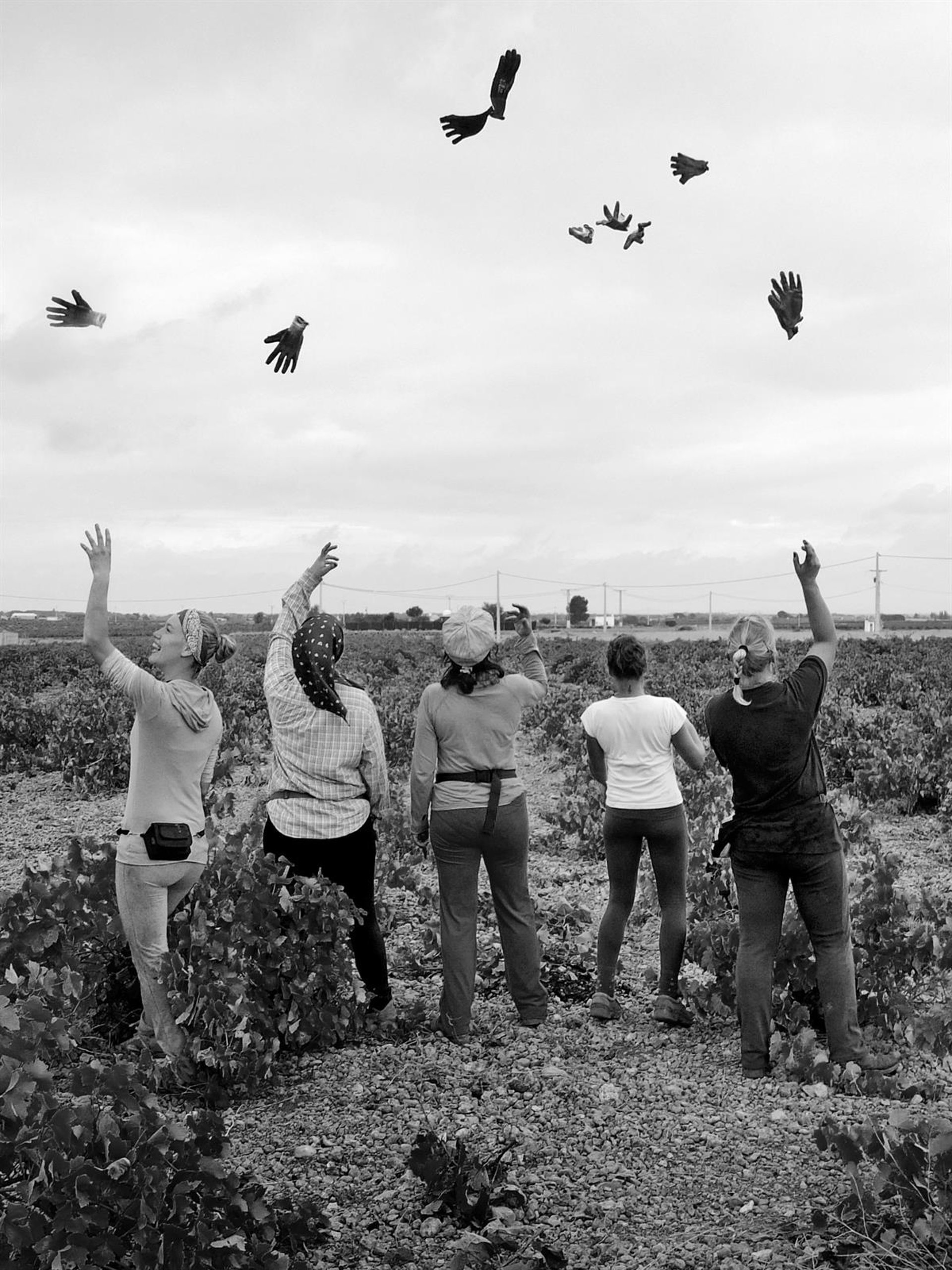 Juanita Misericordia explica que la fotografía, realizada en Villarrobledo, "está hecha el último día de la vendimia de este año, con la cuadrilla con la que llevo vendimiando ya muchos años". "Hay muy buena sintonía entre todas y por eso quería expresar la alegría del final de la vendimia, cuando tiramos los guantes ya destrozados de trabajar. Por fin hemos acabado, lo que nos provoca alegría y por otro lado nostalgia por los momentos tan buenos que hemos pasado", ha afirmado.