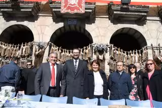 Después de celebrarse la misa en la Parroquia de San Cristóbal, el objetivo se ha puesto en la plaza del Ayuntamiento donde se ha procedido a la tradicional puja y subasta de la caza.