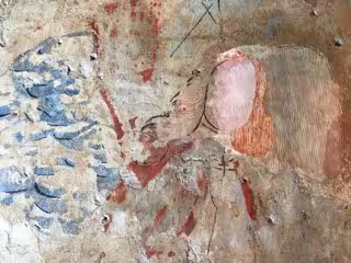 Las escenas representadas son la Anunciación y la Adoración de los Pastores, si bien no se ha podido recuperar la totalidad de la pintura debido a la mala conservación de la zona inferior del muro, así como a la destrucción que sufrió en el siglo XIX para la reubicación del púlpito.