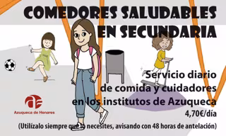 En el marco de 'Azuconcilia', el programa municipal para ayudar a las familias de Azuqueca a conciliar la vida laboral y familiar, el Ayuntamiento de Azuqueca ofrecerá durante el curso el servicio de comedor en los institutos de la ciudad a 4,70 euros el menú.