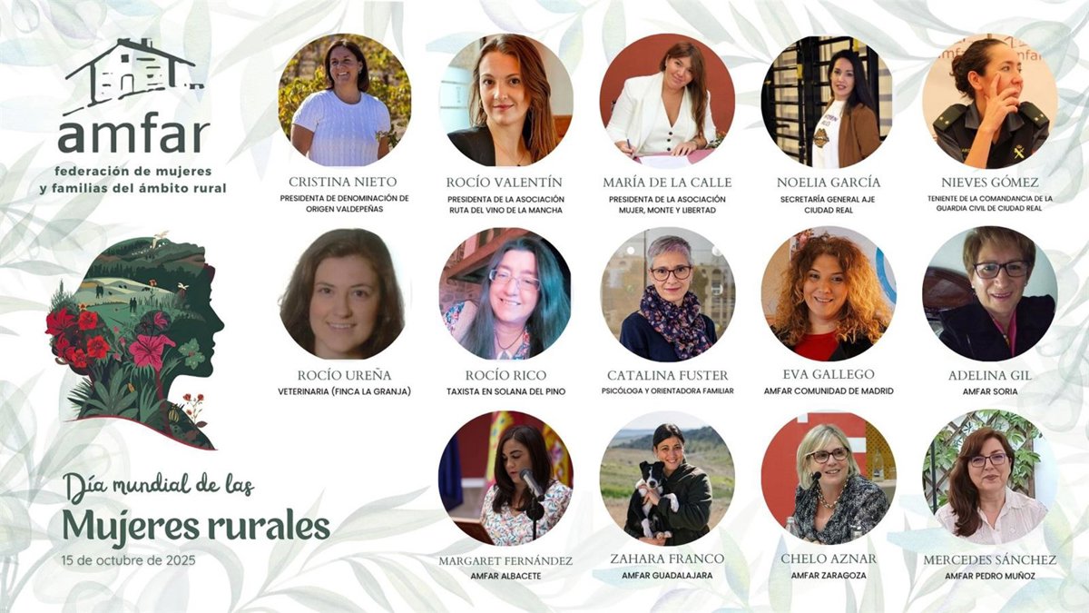 La Federación de Mujeres y Familias del Ámbito Rural (Amfar) celebrará el Día Internacional de las Mujeres Rurales el próximo miércoles, 15 de octubre en el Pabellón Ferial de Ciudad Real, con una jornada que contará con el testimonio de 14 mujeres referentes por su liderazgo, compromiso y ejemplo en la renovación del campo español.
