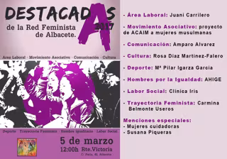 La Red Feminista de Albacete celebra con motivo del Día Internacional de la Mujer la cuarta edición de sus galardones 'Destacadas', con ocho premiadas y dos menciones especiales.