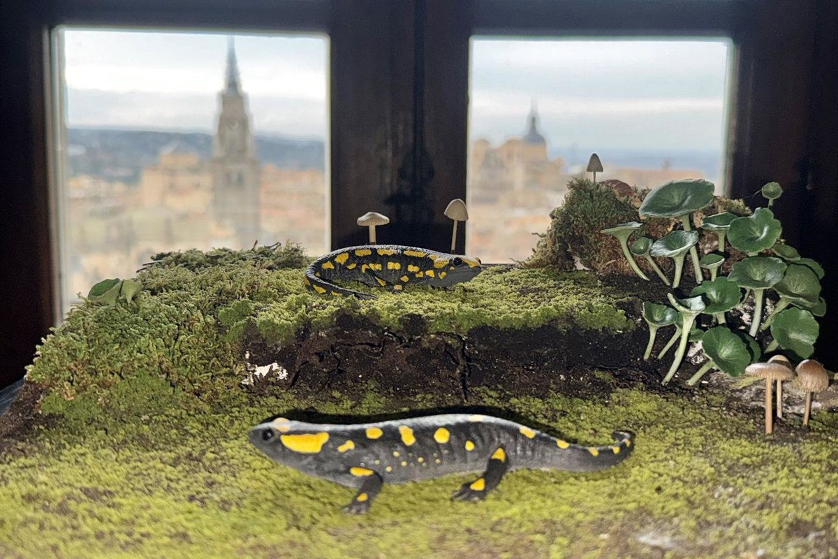Además se ha ampliado la propia exposición en el pasillo de la Sala Borbón-Lorenzana de la Biblioteca con más material, incluyendo réplicas de anfibios, fósiles y un diorama sobre el hábitat de la salamandra común aportadas por el Museo de Ciencias Naturales AVAN junto a guías, material técnico y otros contenidos depositados por los autores de esta muestra fotográfica y documental.