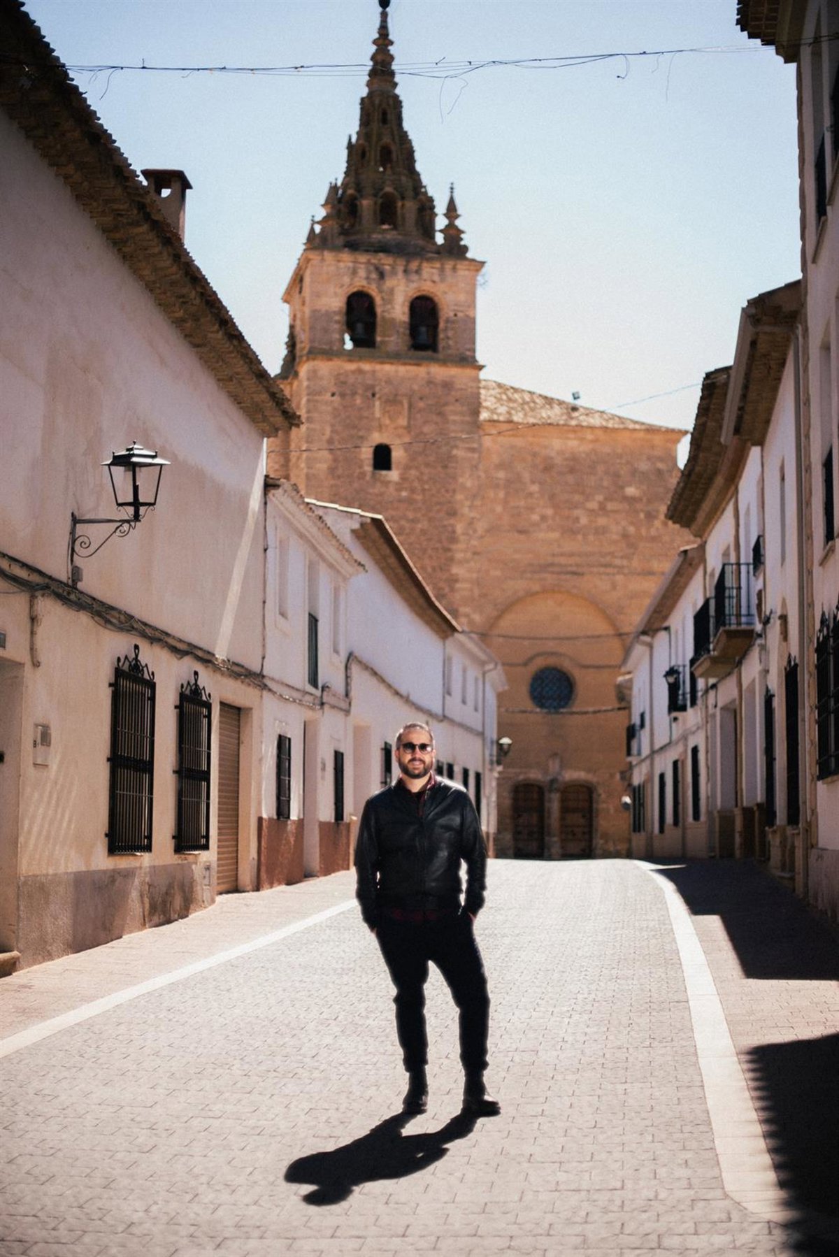 Aníbal Gómez posa frente a la icónica Iglesia de la Asunción de su orgulloso pueblo, Villanueva de la Jara - EUROPA PRESS / MATEO LANZUELA