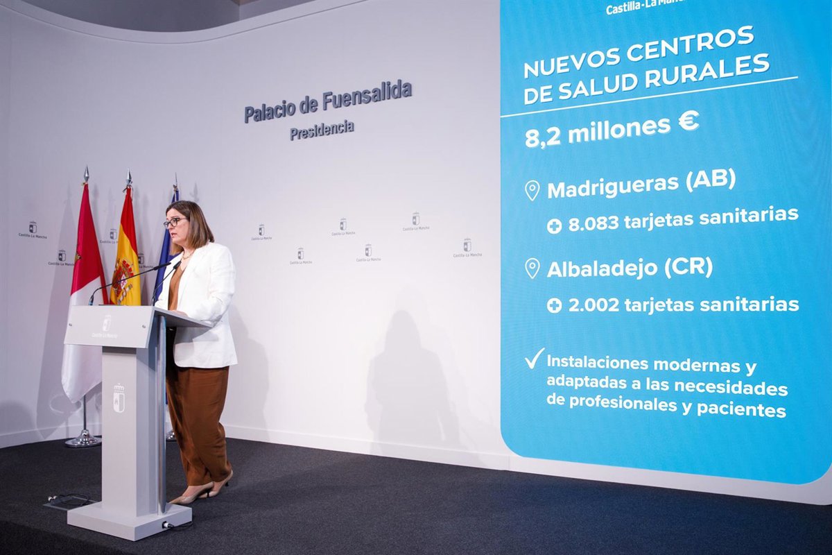 Por otro lado, la portavoz ha anunciado una inversión de 2,9 millones de euros para la contratación de las obras de construcción del nuevo centro de salud de Albaladejo, en la provincia de Ciudad Real. La Zona Básica de Salud de Albaladejo cuenta en la actualidad con 2.002 tarjetas sanitarias de los municipios de Albaladejo (1008 TIS), Terrinches (548 TIS) y Santa Cruz de los Cáñamos (446 TIS).