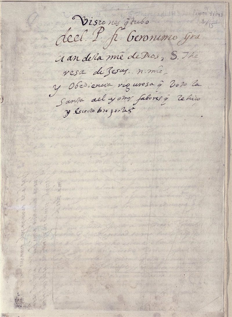 Se desconoce el momento en el que la santa tuvo esa visión y cuándo entregó este relato, pero sí se conoce que en 1603 este sacerdote ordenó hacer una copia notarial del relato, y la incluyó, entre otros escritos, en un volumen destinado a defenderse de diversas acusaciones, según ha informado el Archivo Provincial toledano en nota de prensa.