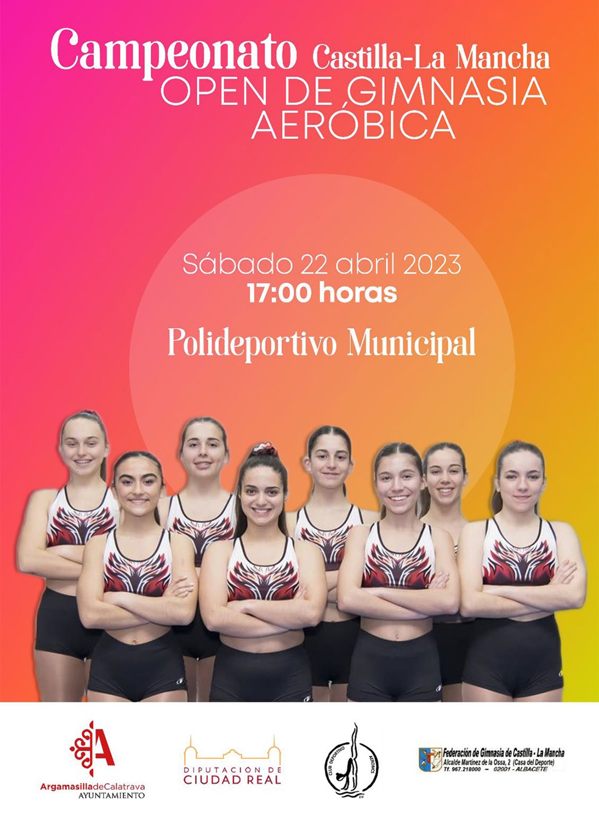 Argamasilla de Calatrava albergará el sábado, 22 de abril, en jornada de tarde, el Campeonato de Castilla-La Mancha Open de Gimnasia Aeróbica, una cita a la que acudirán decenas de participantes de varios territorios autonómicos.