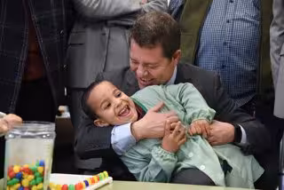 El presidente de C-LM, Emiliano García-Page, con un niño, con motivo del día de la infancia. - JCCM - Archivo