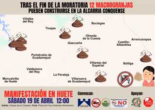 Ante el riesgo de que estos proyectos de macrogranjas se reactiven se ha convocado para este sábado 19 de abril una manifestación en Huete. Entre los colectivos convocantes están Stop macrogranjas Alcarria conquense, la Asociación de Vecinos de Huete y Pedanías, Gascueña y Tinajas contra las Macrogranjas y Macrogranjas No Valdemoro del Rey, y cuenta con el apoyo de Pueblos Vivos Cuenca y Stop Ganadería Industrial.