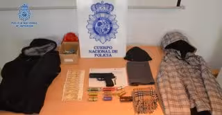 En el cacheo de seguridad se le intervino una pistola, que resultó simulada, aunque con el aspecto normal de una real, usada para perpetrar el robo, además del dinero sustraído. Llevaba las prendas con las que pretendía cambiar de aspecto exterior, así como la braga que le sirvió para taparse la cara. También se encontró en el lugar la caja que se había llevado del banco.