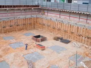 Continúan las obras del aparcamiento de la plaza de Filipinas en Toledo, llevadas a cabo por la Empresa Municipal de la Vivienda, en las que ha quedado completado el movimiento de tierras de la excavación y se está hormigonando la cimentación.