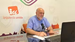 El portavoz de Izquierda Unida-Podemos de Toledo, Txema Fernández, en rueda de prensa. - IU