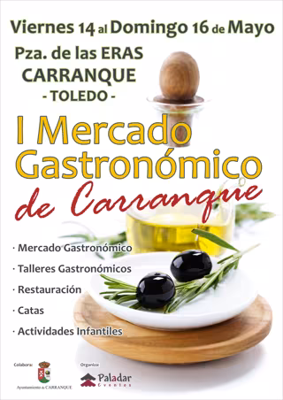 El Ayuntamiento de Carranque organiza desde el próximo viernes, día 14, al domingo 16 de mayo en la Plaza de las Eras de Carranque (Toledo) el I Mercado Gastronómico.