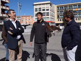 Y está prevista una tercera actuación, de lunes a vienes, que va a consistir en el control de palomas y estorninos con técnicas de cetrería, es decir, la suelta de aves rapaces depredadoras especies, ha explicado por su parte Guillermo Soria, responsable de la empresa que se va a encargar de la realización de estos trabajos de control de aves, poco antes de mostrarnos 'in situ' la forma en la que actúan con la suelta de águilas e híbridos de halcón peregrino.