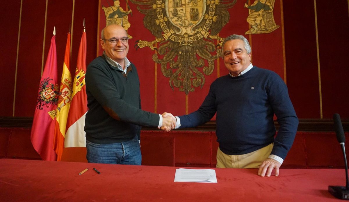 El concejal de Promoción Económica y Empleo, Juan Marín, ha firmado este martes un convenio con el coordinador de la asociación de Amigos de los Conventos, Francisco Rodríguez, para potenciar la actividad de la entidad y colaborar en la protección del rico patrimonio que atesoran estos magníficos inmuebles de Toledo.