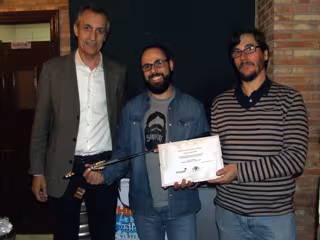 El concejal de Participación Ciudadana y Empleo, Antonio Guijarro, ha echo entrega a Rubén García, responsable de la marca toledana Barbière, del premio al mejor producto en la I Feria de Cerveza Artesana organizada por el restaurante La Cancela, ante la presencia del responsable del evento José Ramón Luján.