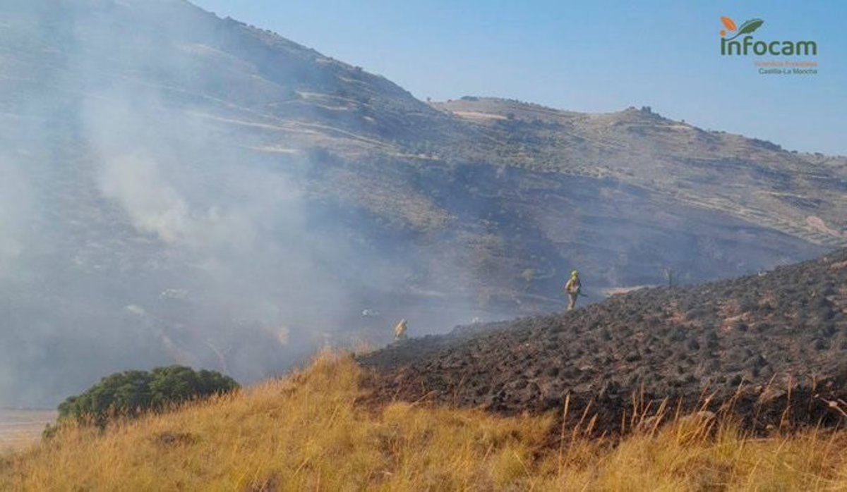 La información que ha recibido el alcalde de Barchín, Víctor Santiago, es que a primera hora "el incendio estaba prácticamente perimetrado, solamente había una zona de la cabeza que estaba sin controlar".