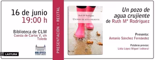El próximo martes 16 de junio a las 19.00 horas en la Biblioteca de Castilla-La Mancha tendrá lugar la presentación del poemario 'Un pozo de agua crujiente' de Ruth María Rodríguez.