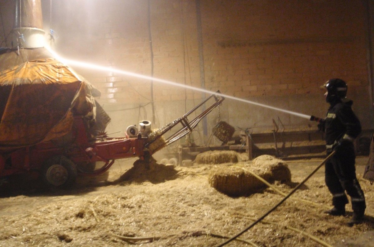 Ya sobre el terreno, los bomberos comprobaron que estaba ardiendo una gran cantidad de paja junto a la pared de una nave llena de pacas y al lado de maquinaria pesada. En ese primer momento se decidió organizar las tareas de extinción para evitar que el incendio se propagase a las construcciones y naves colindantes, a la paja almacenada en el exterior, y a la maquinaria de la industria.