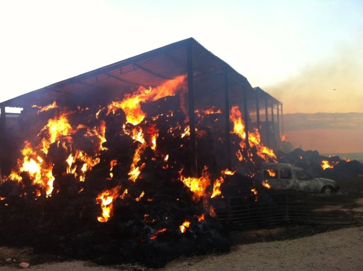 Agentes de bomberos de Cuenca se encontraban trabajando a las 13.00 horas en la extinción de un incendio en una nave de unos 500 metros cuadrados en la pedanía de Colliguilla (Cuenca), dedicada al almacenaje de paja.