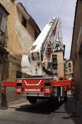 Bomberos intervienen tras un desprendimiento en la cornisa en Toledo