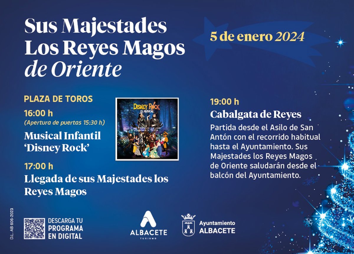 Antes, por la mañana, "sus Majestades los Reyes Magos de Oriente pasarán por el Ayuntamiento a partir de las once y hasta la una del mediodía, para recibir las cartas de última hora de los niños y niñas de Albacete en el hall de la Casa Consistorial".