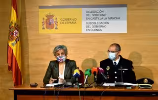Laubdelegada del Gobierno de España en la provincia de Cuenca, María Luz Fernández, acompañada por el jefe de la Brigada Provincial de Extranjería y Fronteras de la Comisaría Provincial de la Policía Nacional, Javier Mayordomo, en rueda de prensa. - SUBDELEGACIÓN