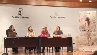 Tras la visita de la exposición, la directora del Instituto de la Mujer, junto al presidente de las Cortes de Castilla-La Mancha, Pablo Bellido; el delegado de la Junta en Guadalajara, Eusebio Robles, y la delegada de Igualdad, Sonsoles Rico, han presentado el cortometraje 'A plena luz del día' del director y guionista Israel Calzado González. La película retrata a través de la ficción una dramática realidad como es la trata de personas con fines de explotación sexual.