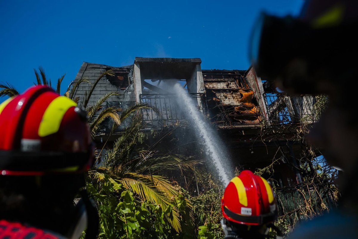 Bomberos refrescan una de las casas afectadas por el incendio de Méntrida en la urganización Calypo Fado de Casarrubios del Monte - MATEO LANZUELA/EUROPA PRESS