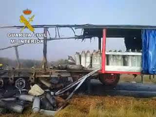 Varias de las bombonas transportadas hicieron explosión antes de quedar totalmente extinguido el fuego, aunque no hubo que lamentar desgracias personales y la Delegación del Gobierno añade que el camionero ha visto cumplido su deseo de felicitar personalmente a los guardias civiles que le auxiliaron en este incendio, reuniéndose con ellos.