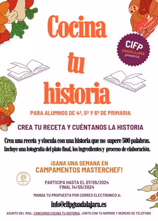 El Centro Integrado de Formación Profesional de Guadalajara ha convocado el concurso gastronómico 'Cocina tu Historia' para alumnado de 4º, 5º y 6º de Educación Primaria de los colegios de la provincia.