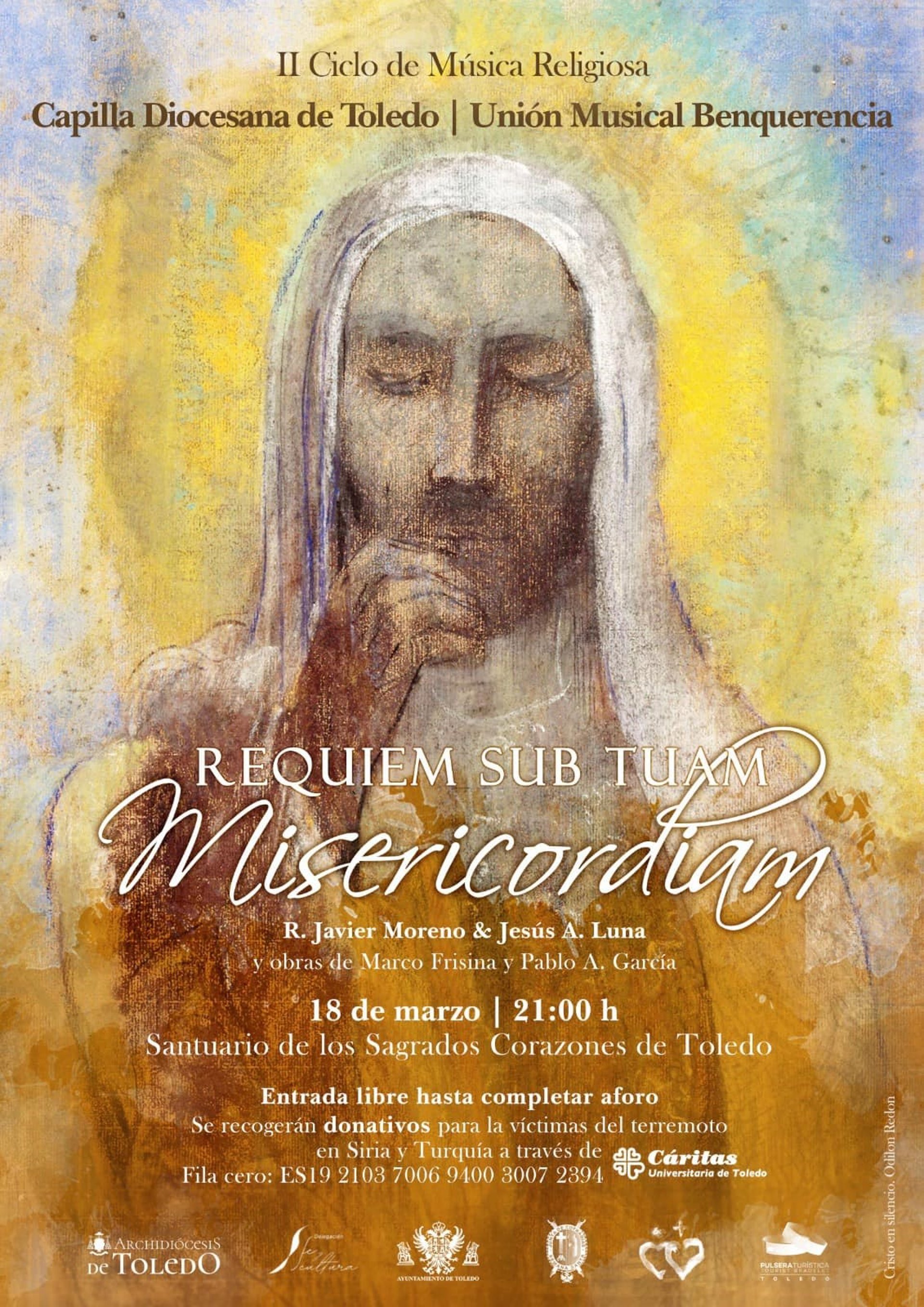 El acto tendrá un marcado carácter solidario y a tal fin se recogerán donativos para las víctimas del terremoto de Siria y Turquía a través de Caritas Universitaria de Toledo. La peculiaridad de este concierto reside en que intervendrán más de un centenar de músicos y cantores, ya que será interpretado por la Capilla musical de la Diócesis de Toledo junto a la Banda Unión Musical Benquerencia, con la que ya han colaborado en otras ocasiones.