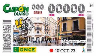 Carretería, calle de Cuenca con gran historia y tradición, protagoniza el cupón de la ONCE del martes, 10 de octubre, dentro de la serie 'A pie de calle'. Cinco millones y medio de cupones llevará la imagen de esta calle.